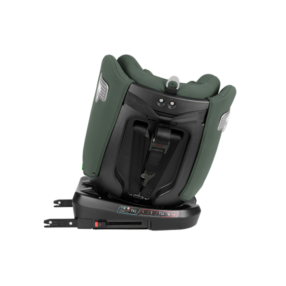 وجود چرخش ۳۶۰ درجه امکان بستن کودک را بسیار راحتتر میکند و قابلیت نصب در دو حالت خلاف جهت حرکت (40–105 cm) و همجهت با حرکت (76–150 cm) را فراهم میسازد.
